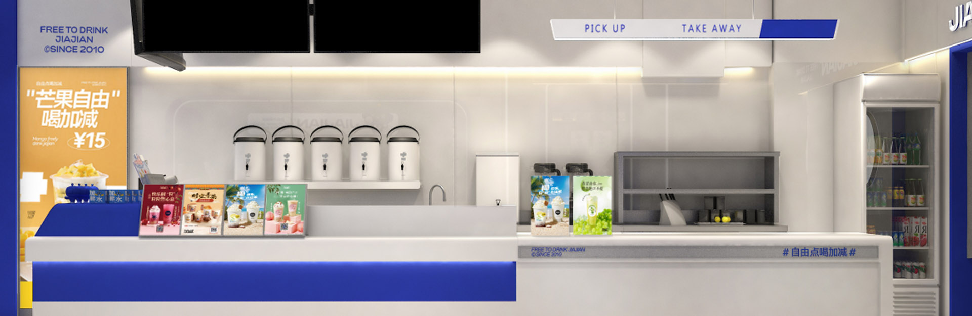先后进行4次门店形象升级。全新第5代门店形象以简洁的设计风格及多样的装潢理念呈现新概念茶饮品牌风貌。